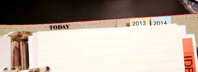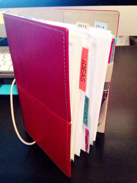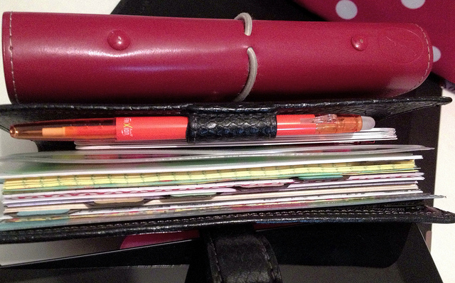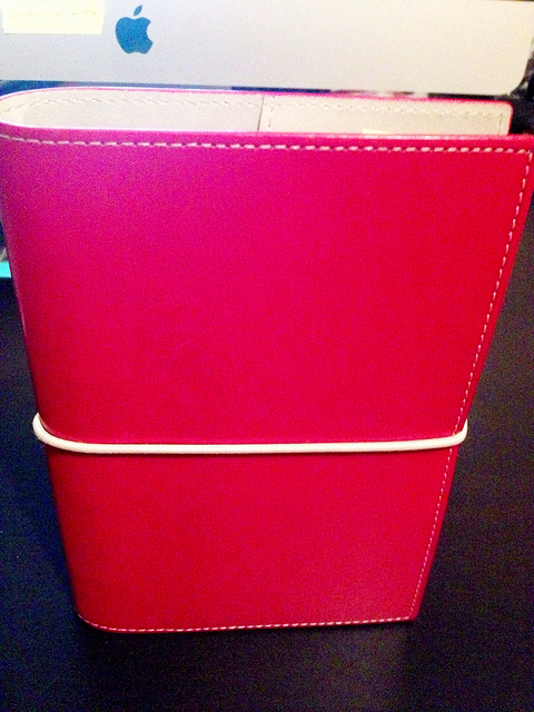 I started working on a small business in March 2013 and launched in June. During my “startup” phase I used a Filofax to organize myself. At first I used a personal black Chameleon, and later a personal red Domino, which is the one I’ll be showing you.