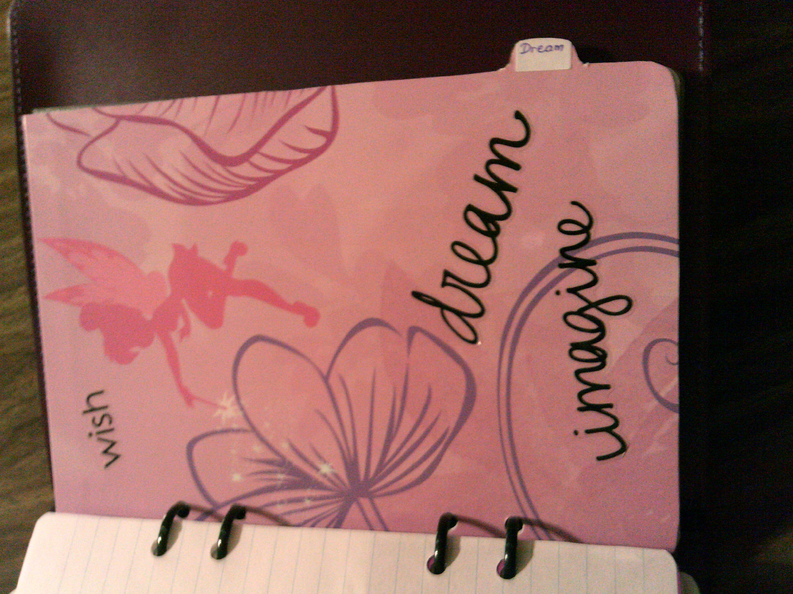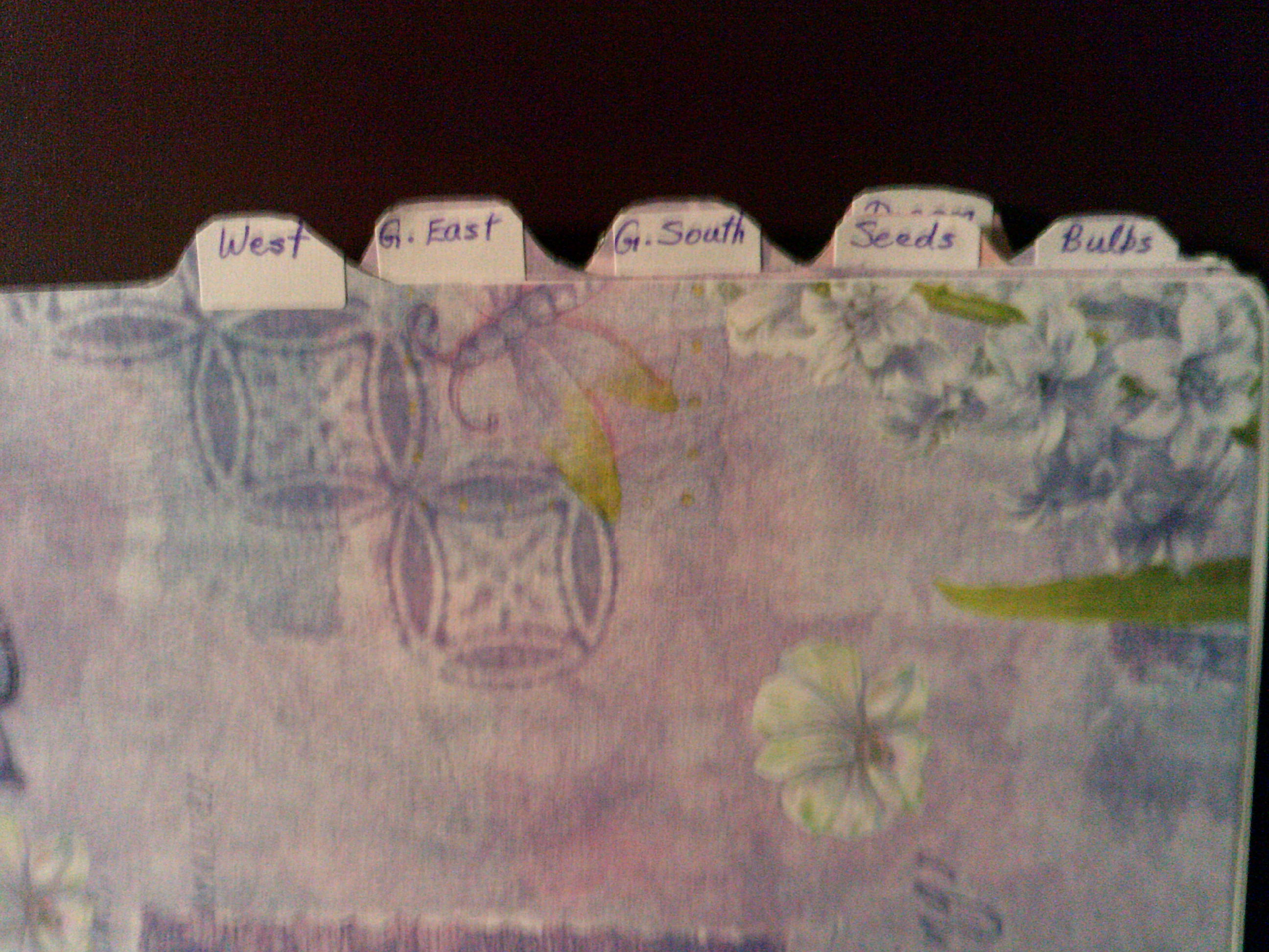 Last is the Dream tab – this is another pocket divider. Here I will write down all those things I would like to do, expansion of the garden, add a water feature, etc. A little pixie dust will be needed to help this tab along!