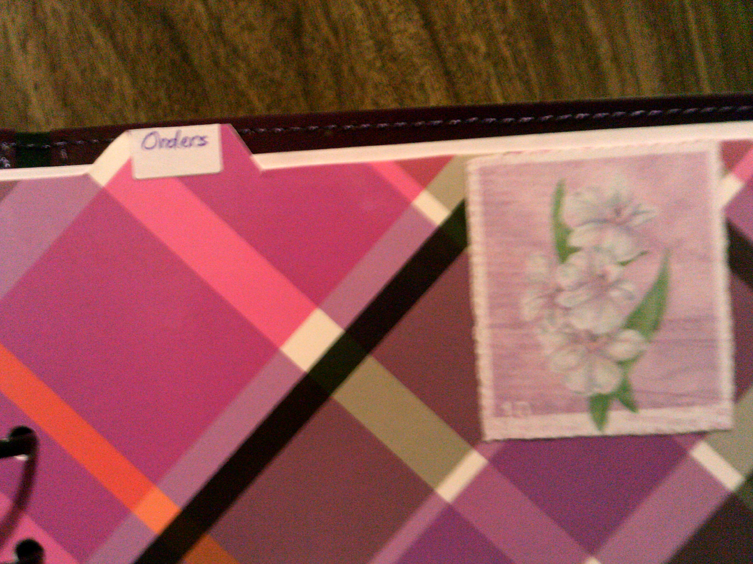 I received the binder last week, and I have been busy trying to get it set up since then. It came stuffed with lined and blank paper trimmed and hole punched to size. I needed to make dividers, and come up with some kind of a calendar that I could use.