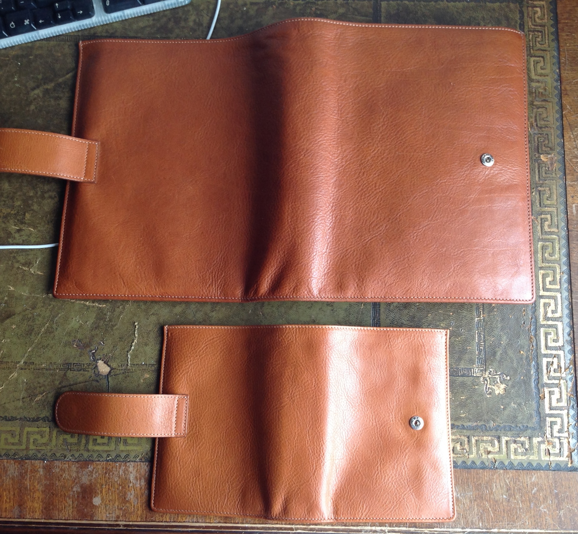 Side by side, closed. A5 Mia Cara has been used daily for five months, Pocket Mia Cara is new