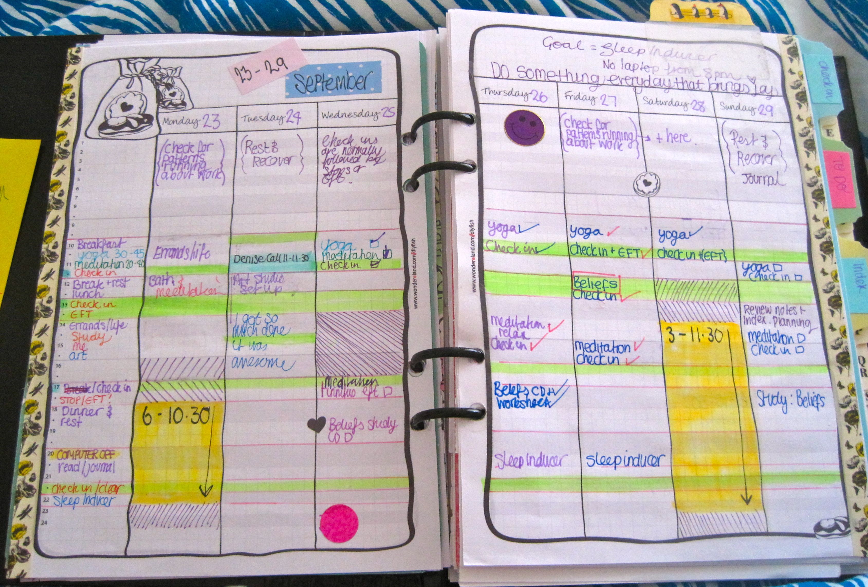Next up was the weekly planning calendars… take a deep breath…
