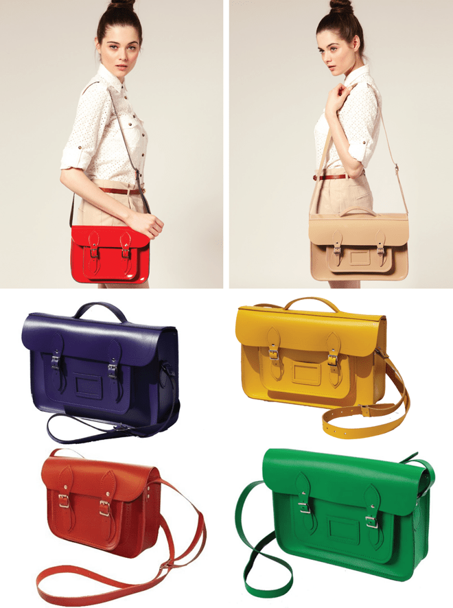 If you looked at street style blogs from fashion month (and we’re guessing you did), you surely noticed those fluorescent old school style satchels hanging from many a fashionable shoulder. You also might know that they’re from the Cambridge Satchel Company, and retail for under $135. An It-bag that’s actually within our means? We had to have one and we had to know more.