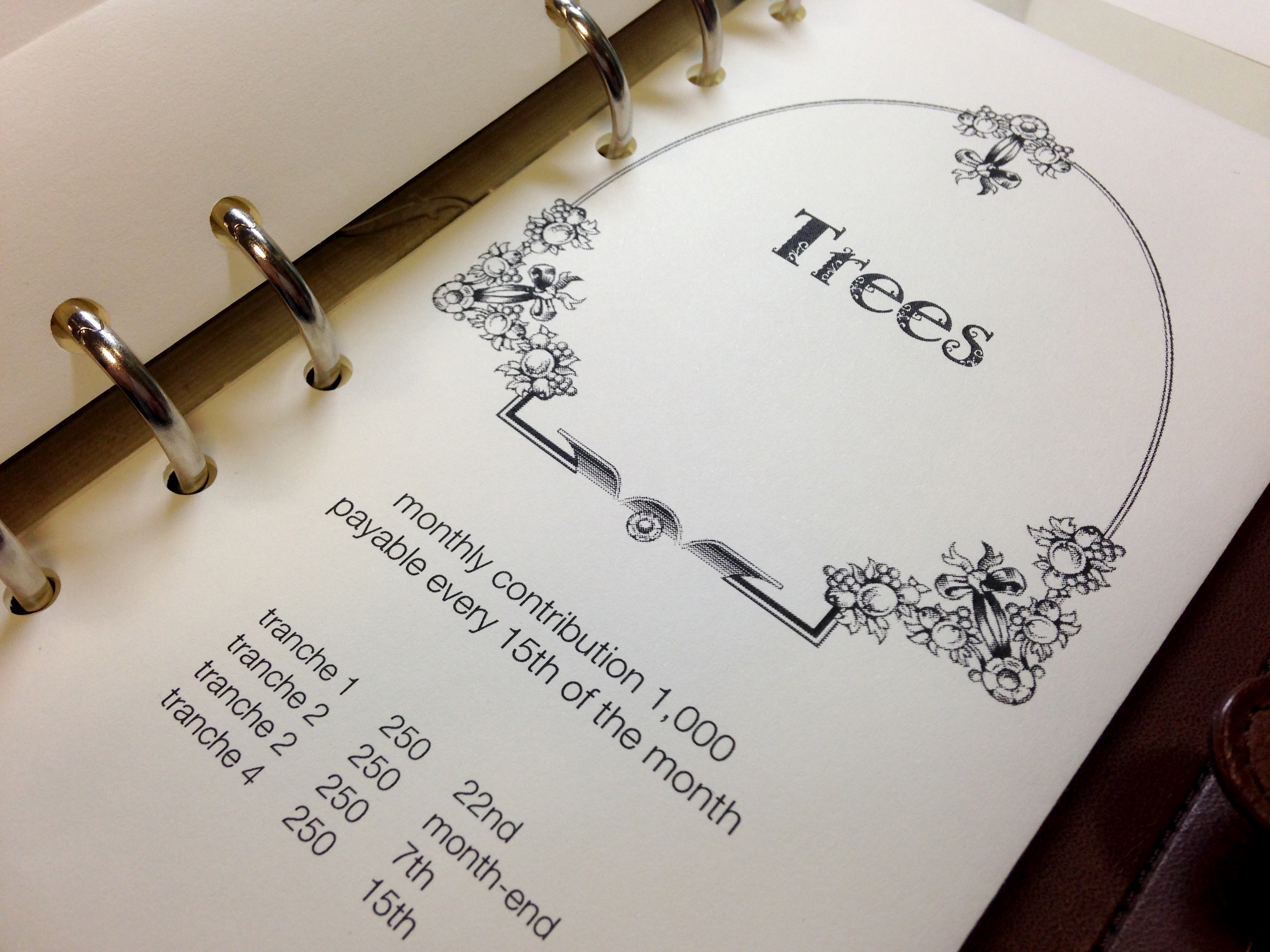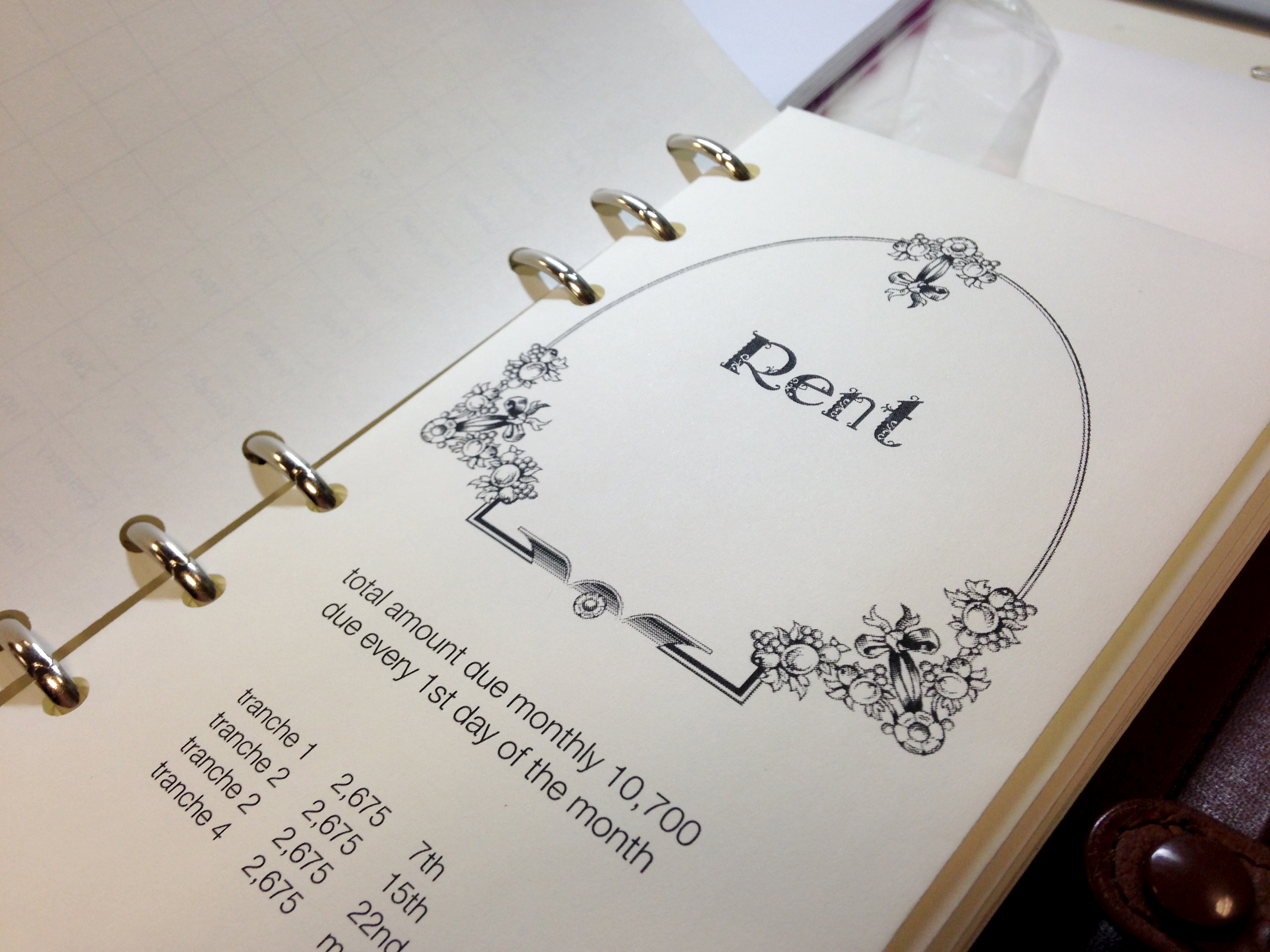 The envelopes are exactly 95mm x 171mm in size, and are made out of the same ivory-colored luxury paper that I used for the cover, the fly leaves, and the matrices. I wanted everything to match, in color and design and size. The whole system is also entirely in vertical format, because I did not want to keep turning the Savannah side-to-side. Flipping through binders in a more book-like way is more convenient and comfortable for me.