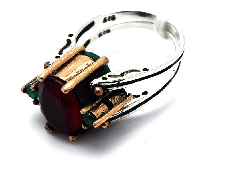 And this one – exactly like mine apart from the colour of the stones – which I spotted at a local auction. It had a green main stone and red side stones on one side and a red main stone with green side stones on the other side: