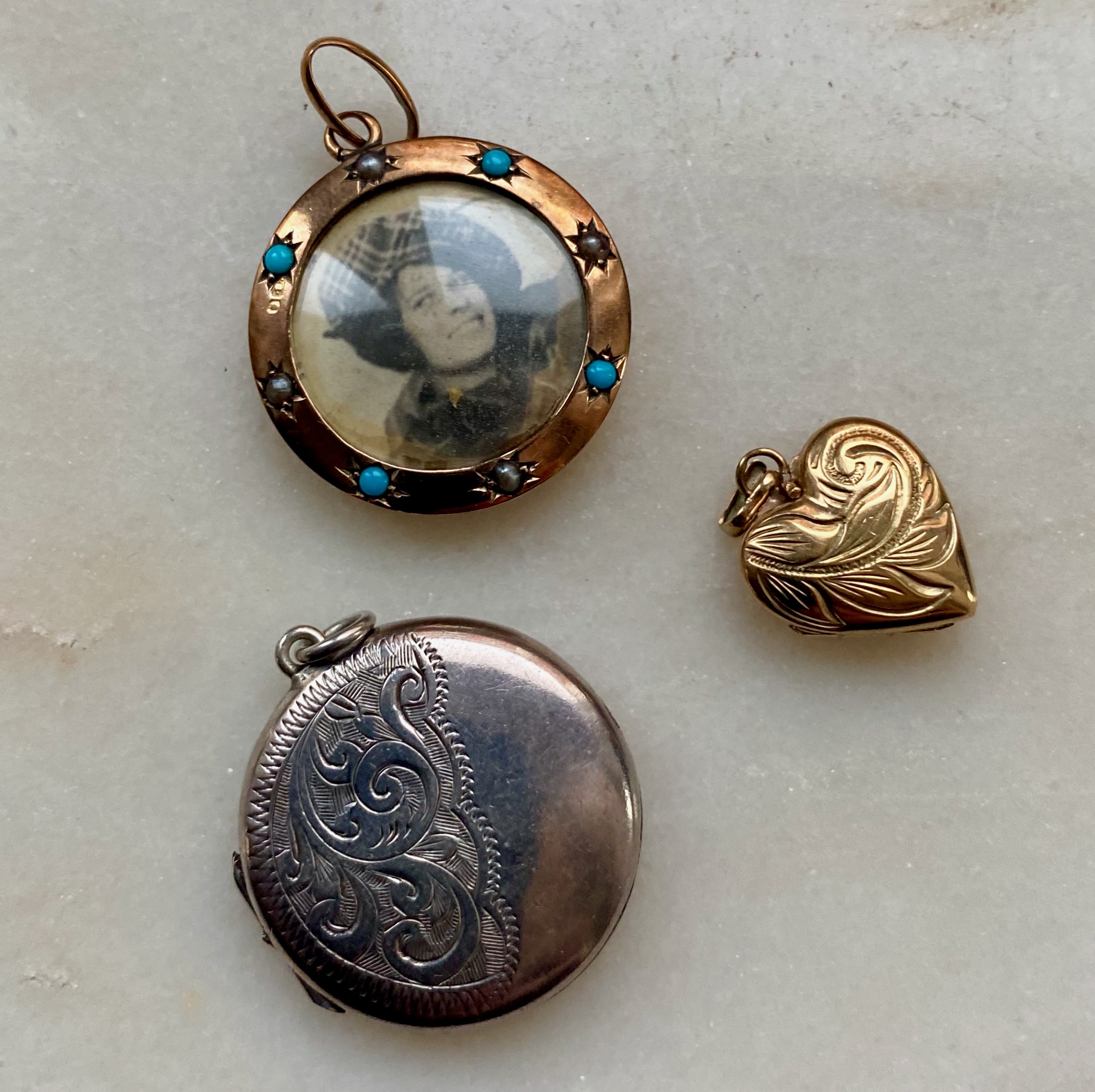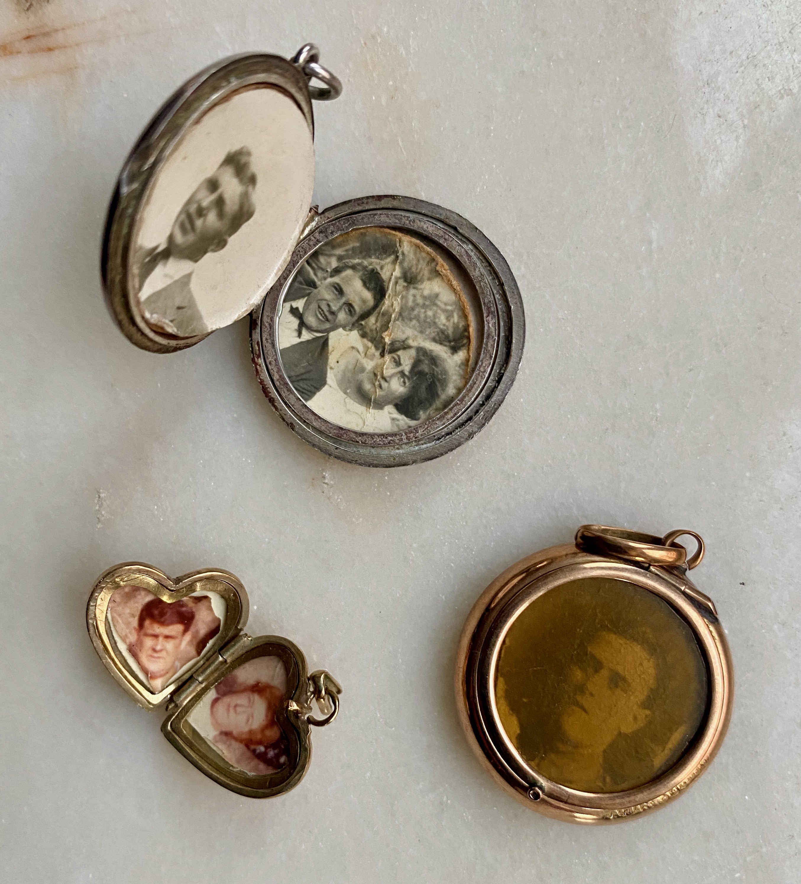 My paternal grandmother wore a gold locket (circa 1920) with a photo of her on one side and her husband on the other. My mother always used to wear 2 photos in a round silver locket, and for my 12th birthday I received a gold heart-shaped locket with pictures of my parents in it. I wore it for so many years that I wore the bail out.