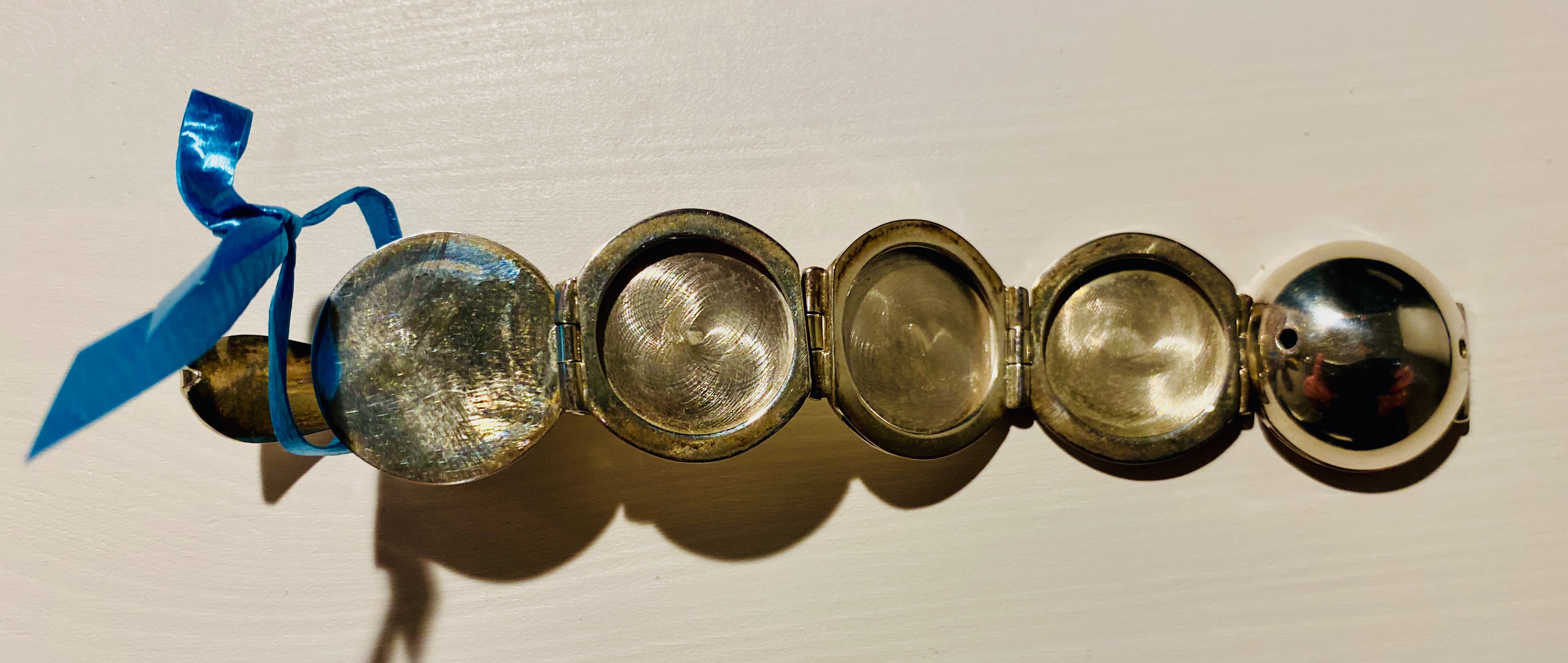 This type of locket is in another league entirely – it concertinas so it holds 6 photographs! I have been hunting for one for ages but they don’t come up for sale very often, especially in mint condition. I finally found one!