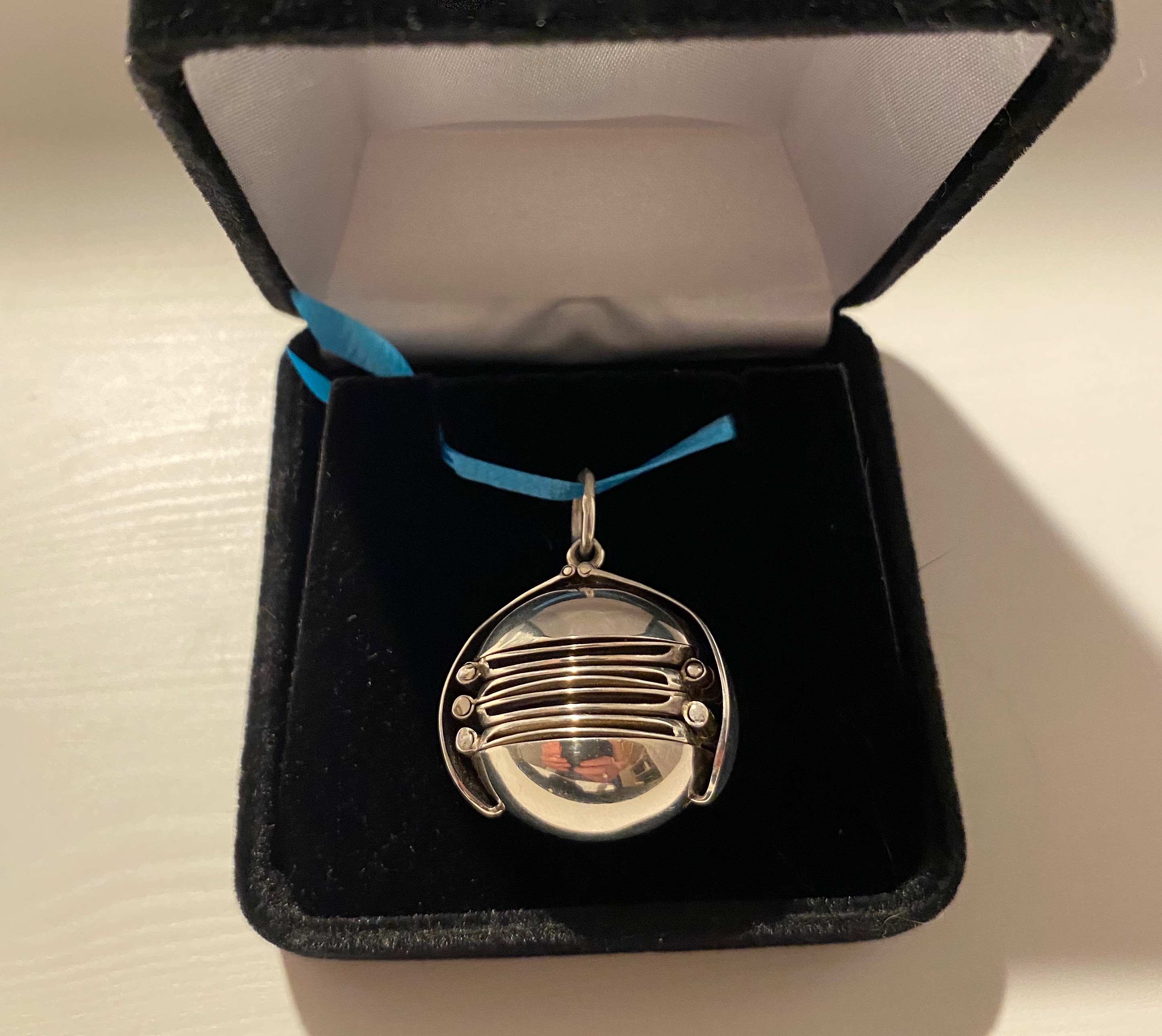 I bought it in December so I featured the seller’s photos. This one is my own review of it. It is quite big but on a long heavy chain it looks really nice.
