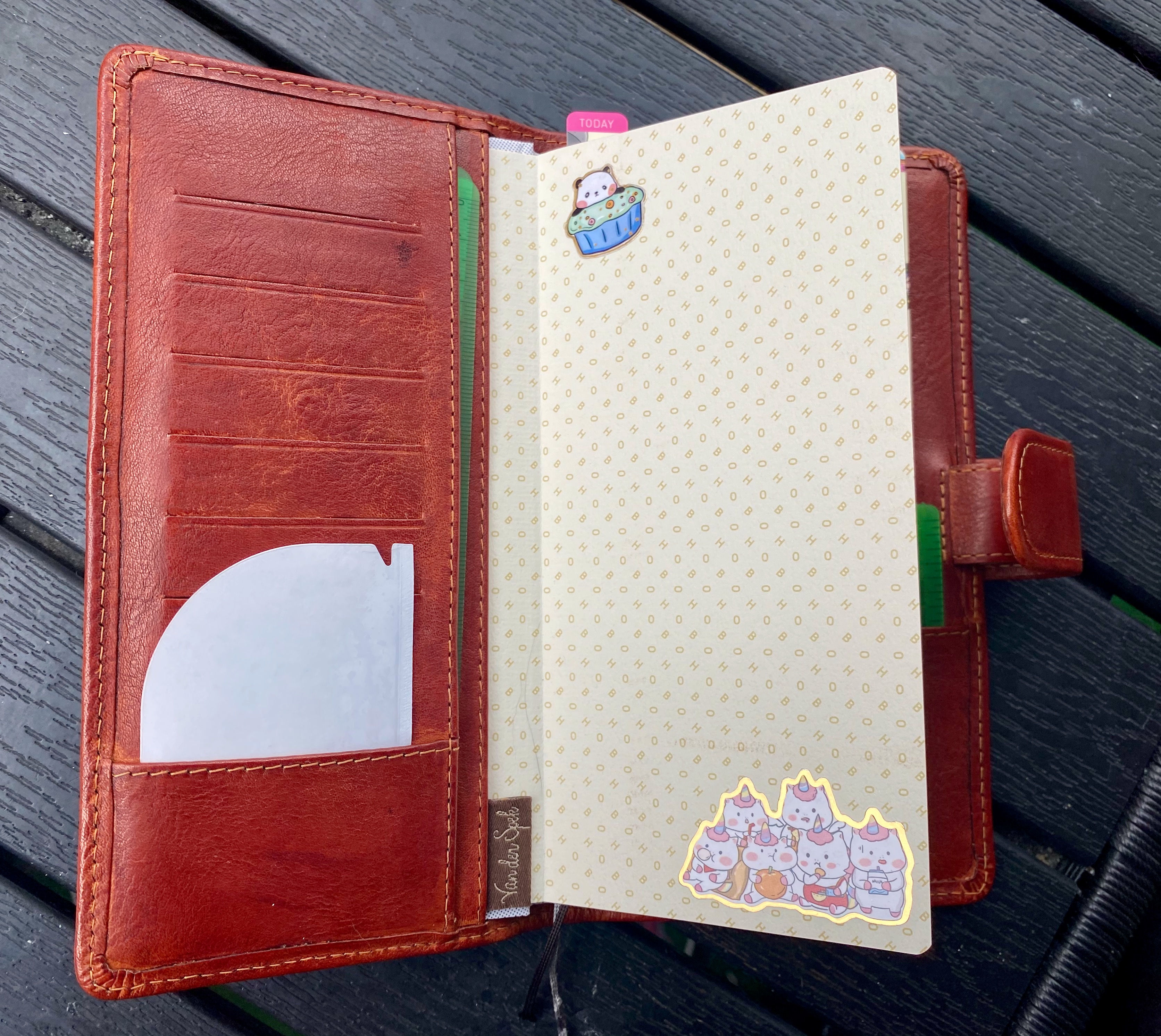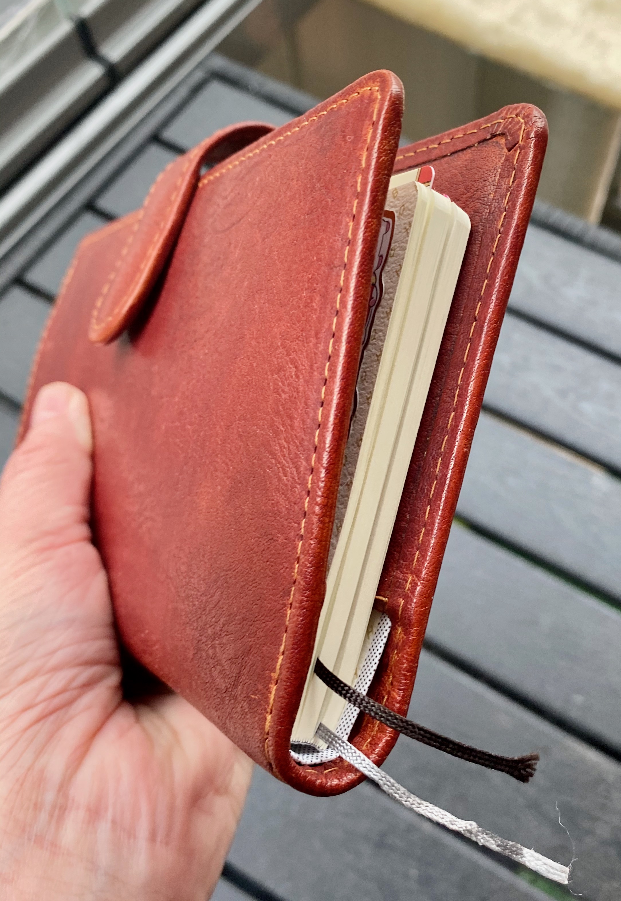The Weeks fits perfectly into the cover. Perfectly. It is light and compact, and there are plenty of paper and notepages. I love the crisp crinkliness of Tomoe River paper and also that so many pages fit into such a small book.