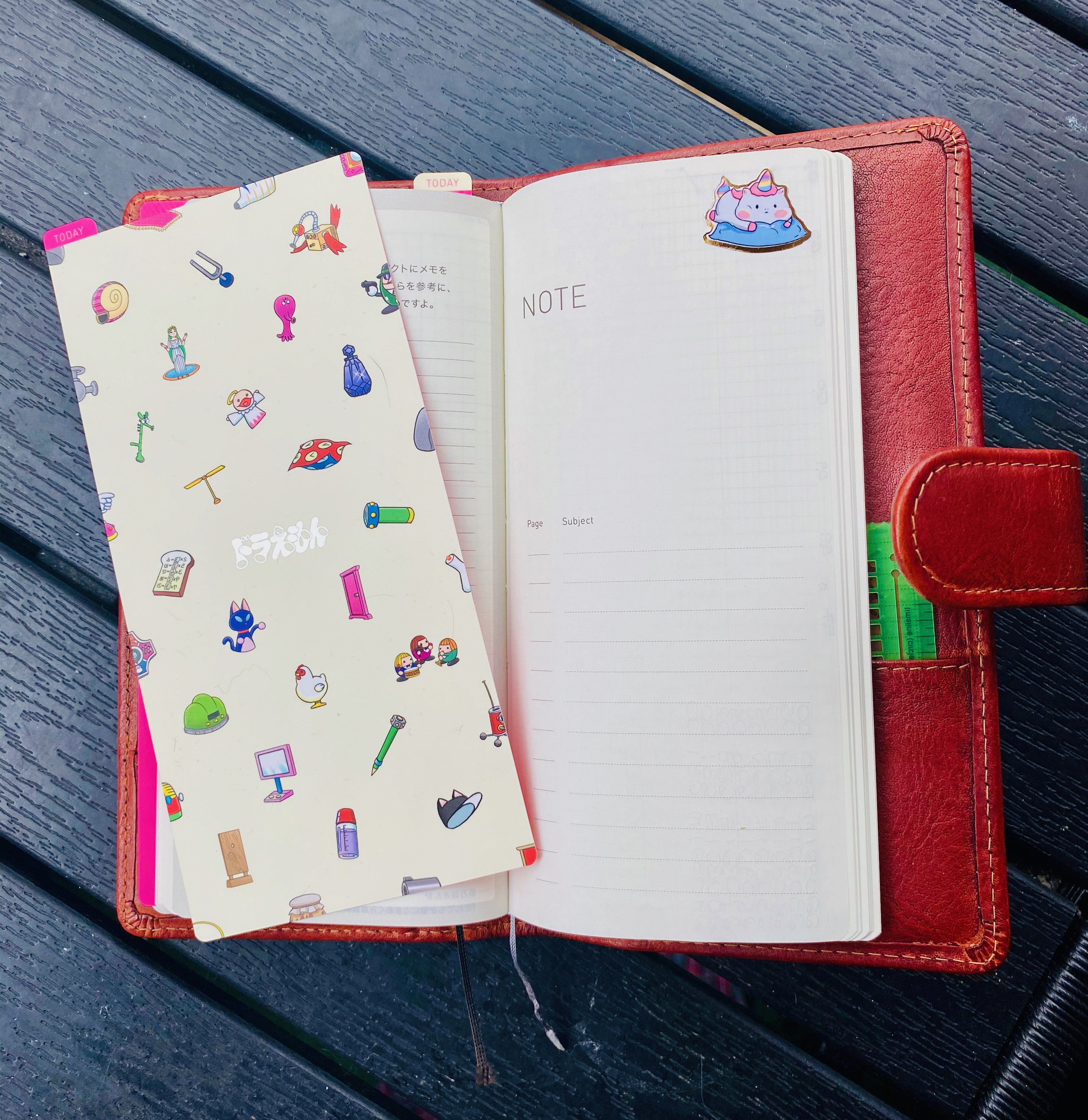 I have even used a sticker or two, which is very unlike me. I have two Doraemon pencil boards marking my pages, old Hobonichi stencils in the side pockets, and small notes about beauty products I would like to use in other little nooks and crannies.