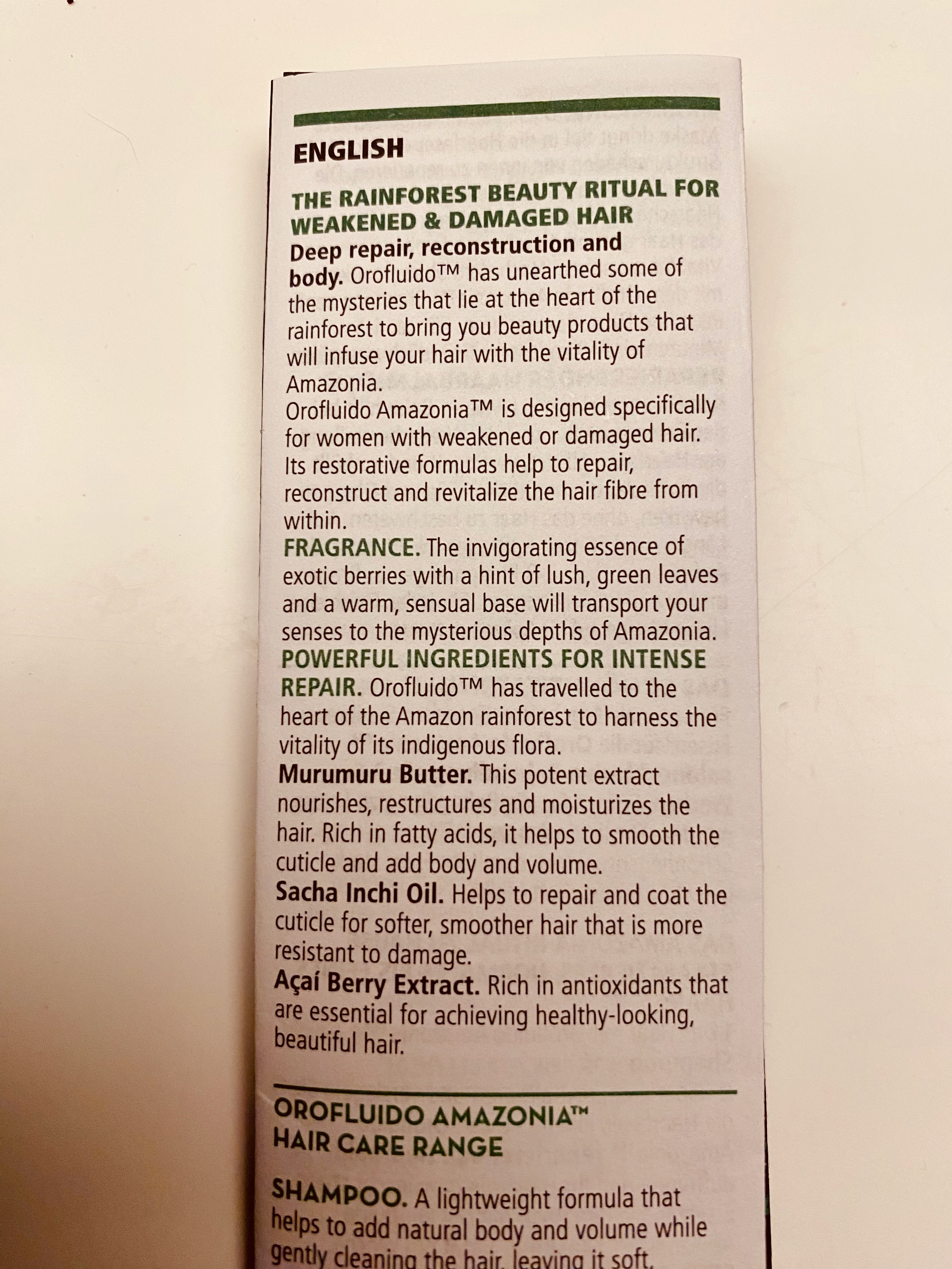 I honestly hate this kind of advertising-speak. Surely no one believes that they actually went trekking through the rainforest for secret ingredients to save hair? Usually the ingredients are in minuscule amounts, way down on the list.