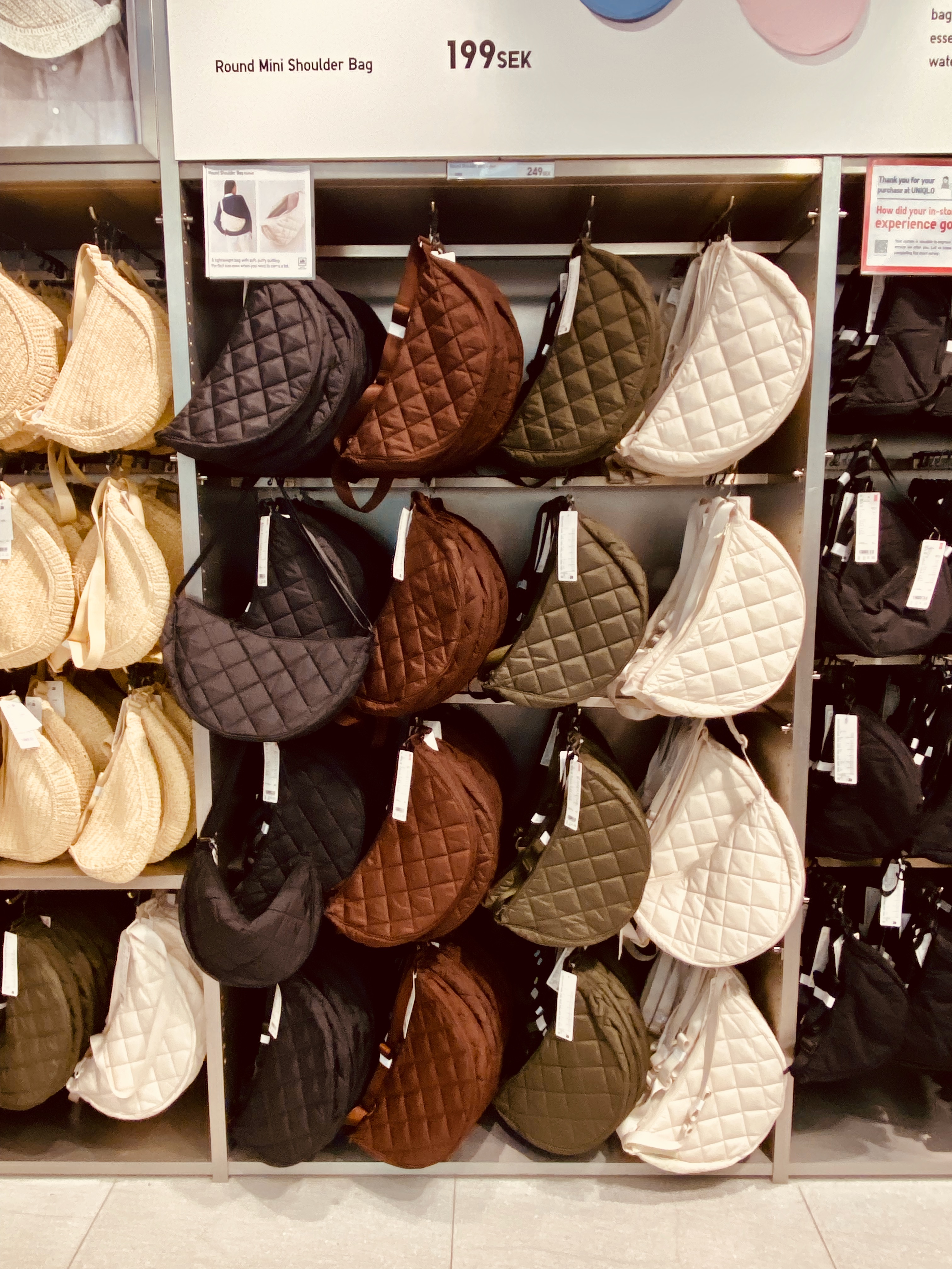 Uniqlo now has larger quilted sling bags. These are quite a lot bigger than the original ones, but are not oversized in a way that would look silly.