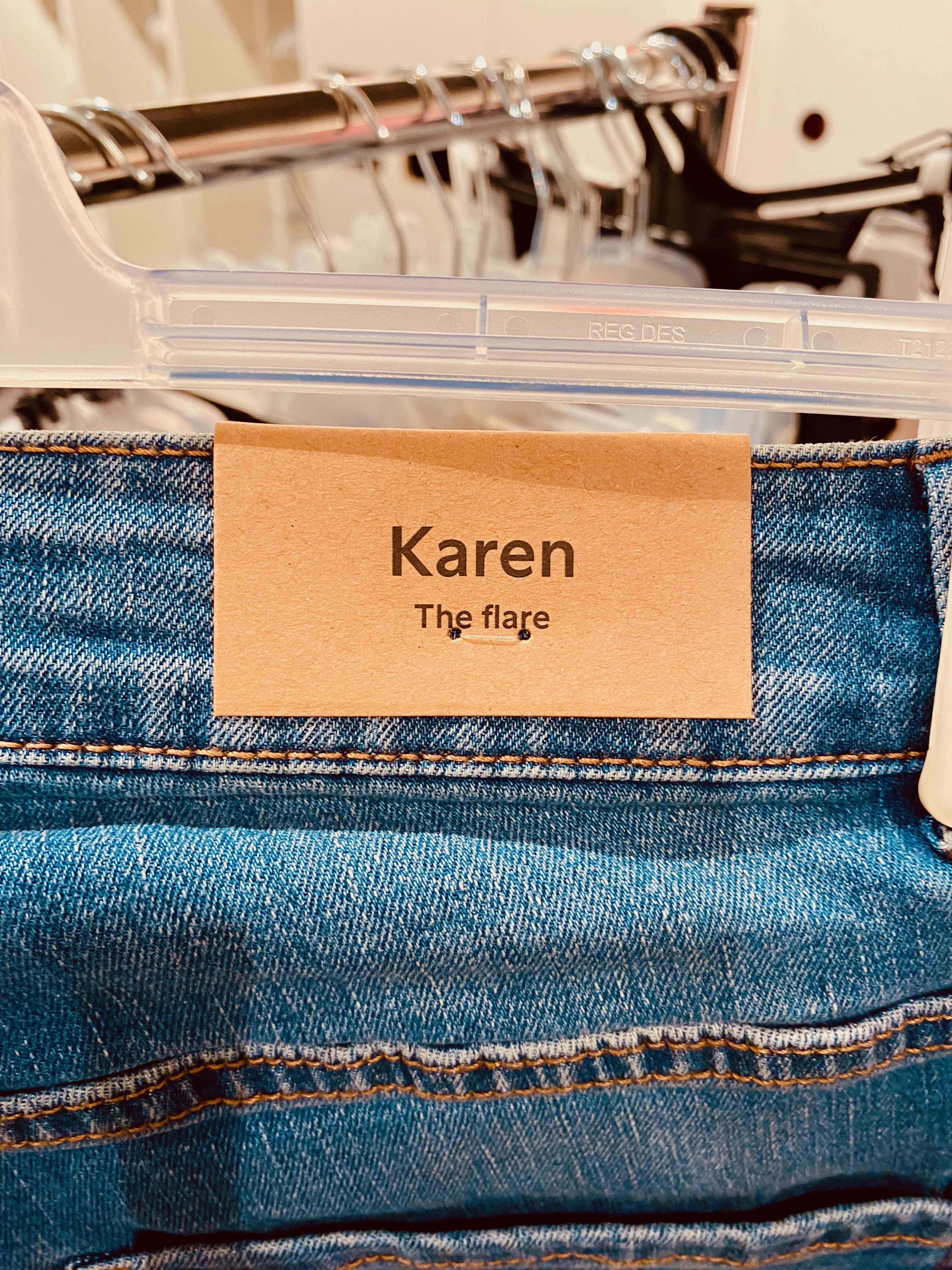 I spotted these jeans and wondered how the name Karen had become the descriptor of a middle aged woman who wants to speak to the manager. At one time the names used for these women were Janet, Brenda and Karen, but for some reason Karen took off. It was a very popular name for people in my generation and I feel really sorry for the fact that their name has become a joke.