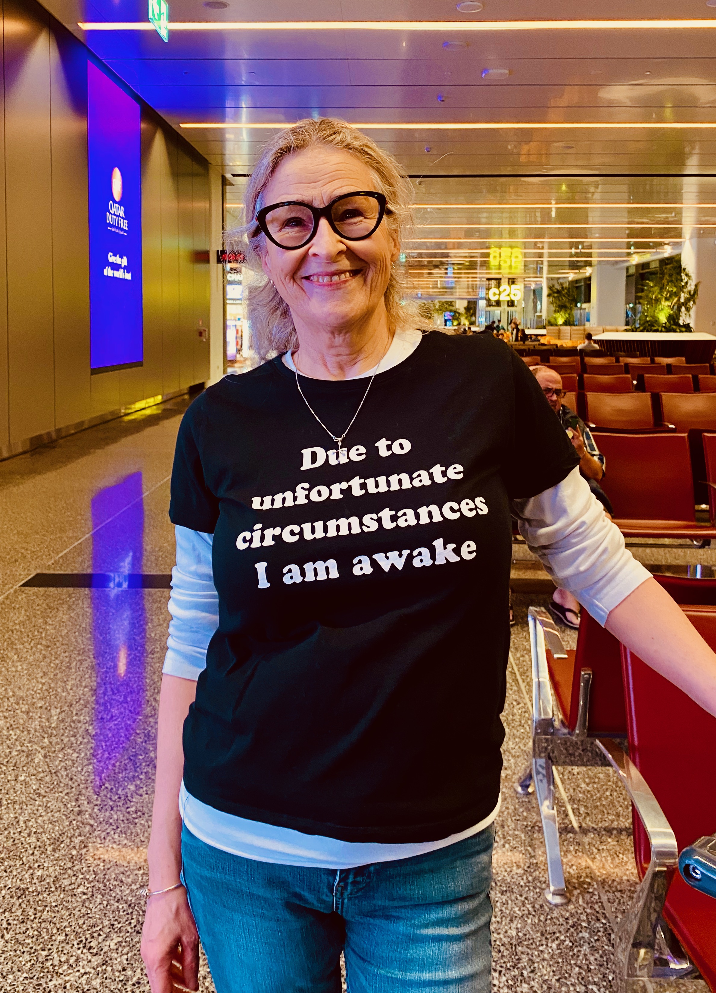 I always wear this t-shirt for inconvenient travel. Loads of people comment on it and it gets my feelings across perfectly