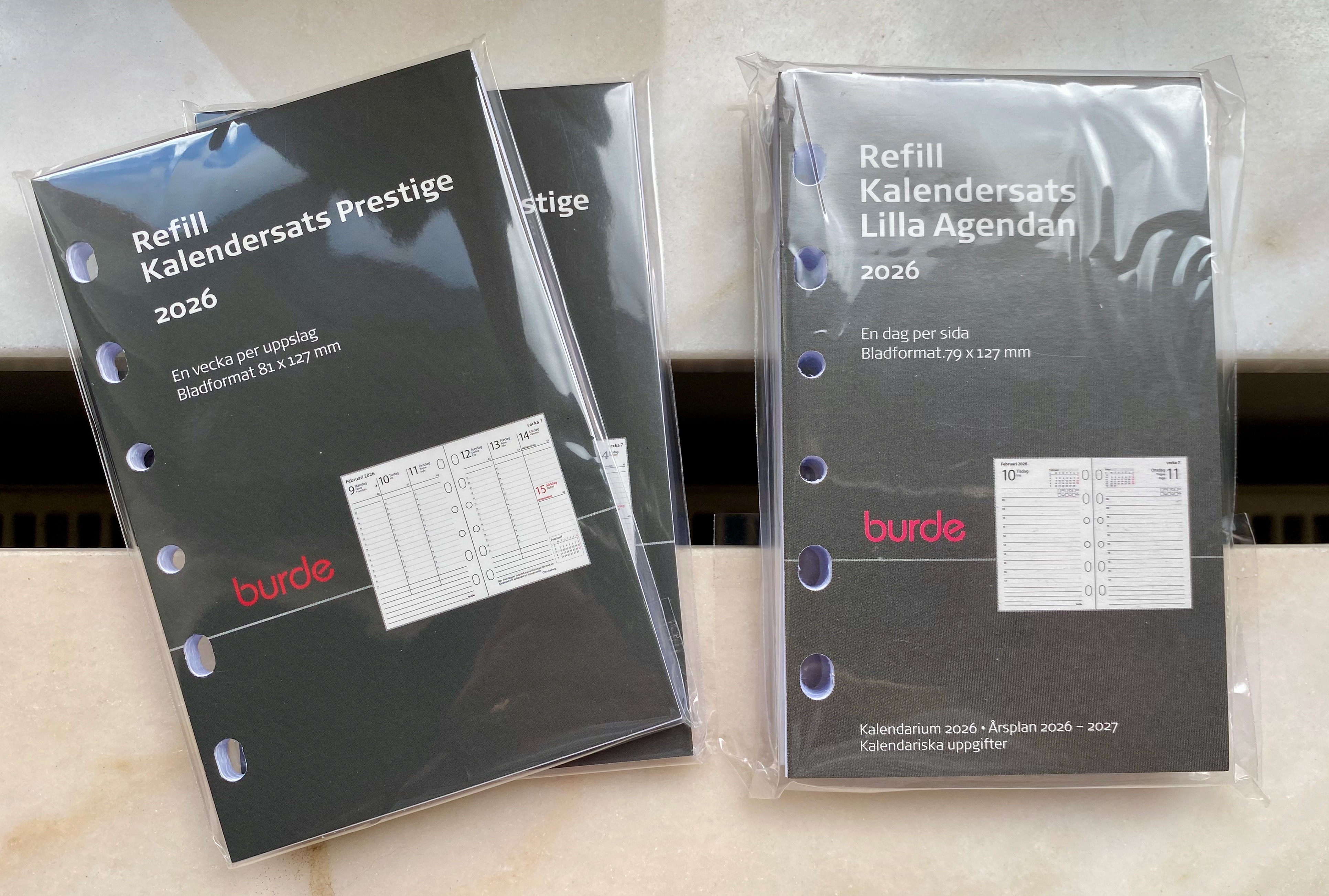 I recently bought my 2026 calendar refills. I am so boring – I always buy the same layout, for the same reason. And I always buy Burde.