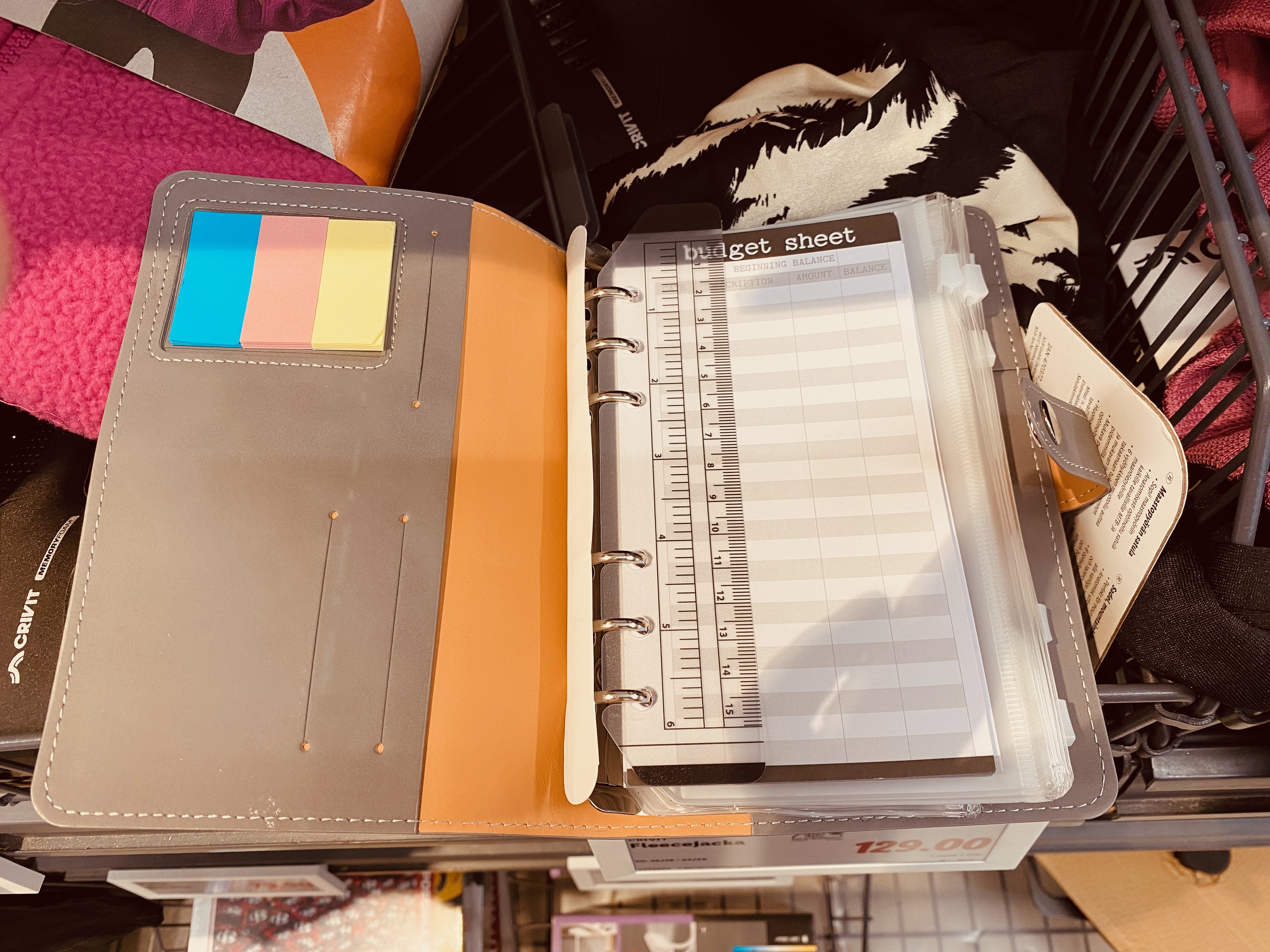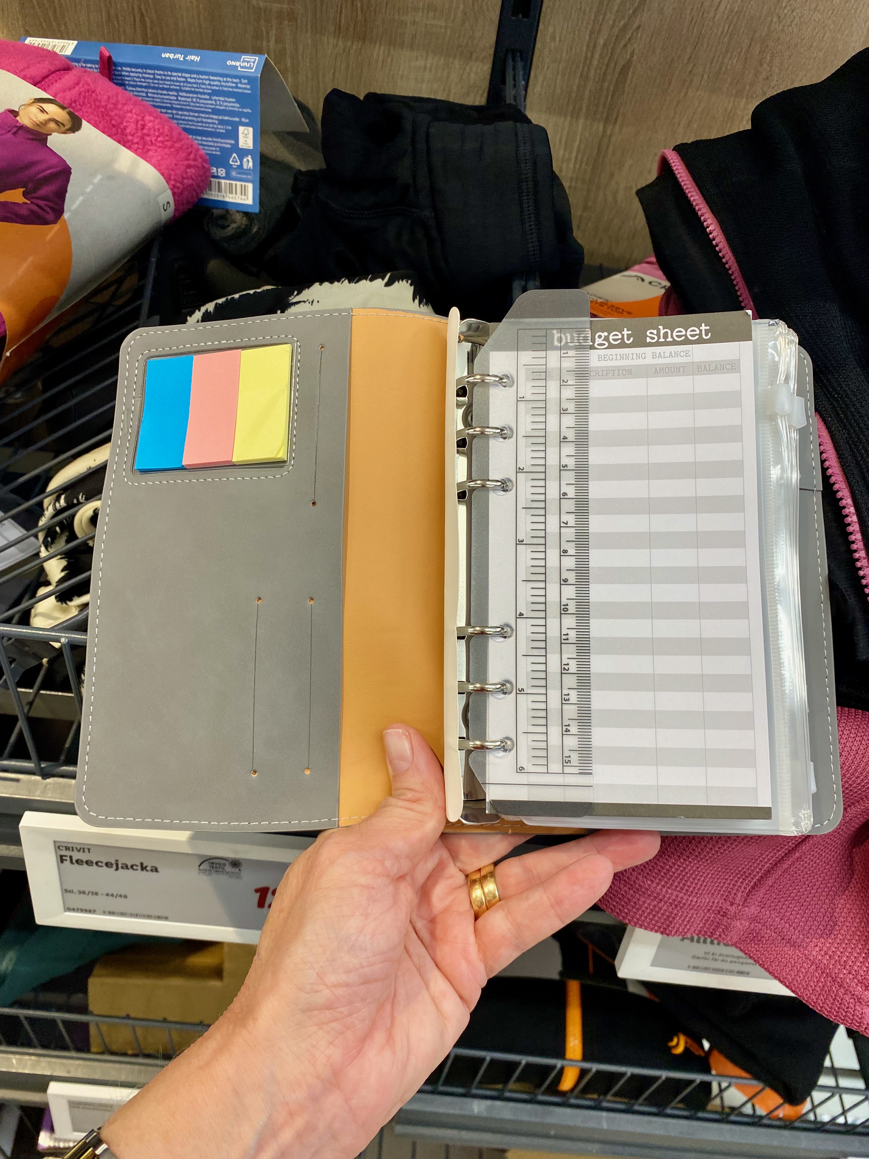 I spotted this personal-sized ring planner at Lidl the other day while stocking up on my favourite tissues (their tissues are the best). It cost $3. The cover was shoddy quality – very floppy and cheap. But the inserts were pretty good