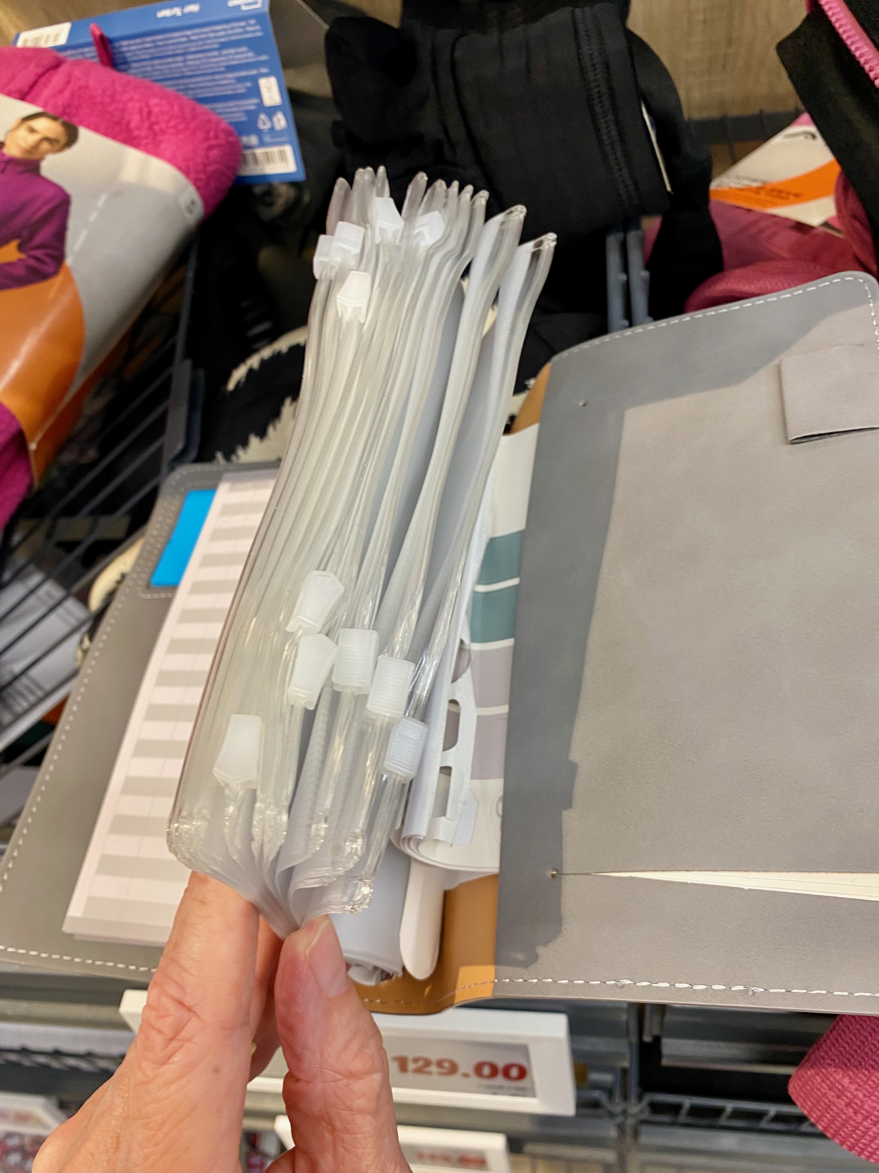 • many plastic zippered envelopes – good quality too