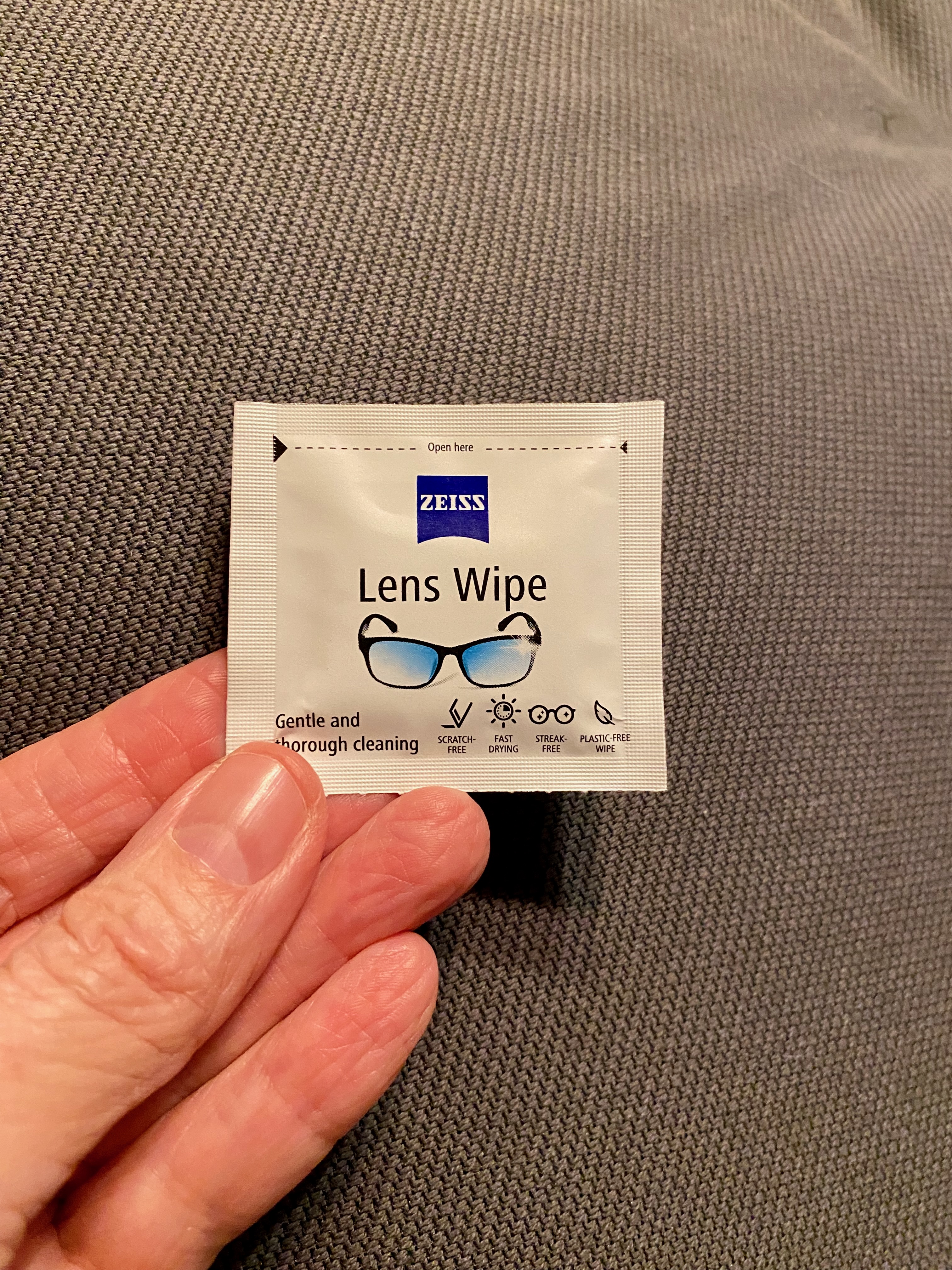 I normally buy my glasses wipes at the supermarket, pharmacy or optician. I carry them in my bag because it is easy to clean my glasses on the go. At home I use gentle dishwashing liquid, my cousin’s home recipe, or a glass cleaning spray.
